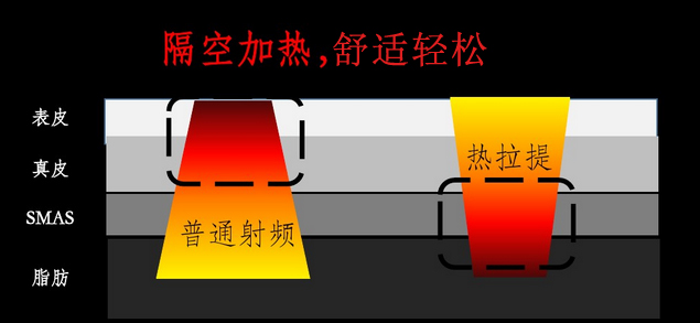 1、淺層加熱,活膚祛皺—熱拉提TM能夠準(zhǔn)確的將射頻能量作用于真皮淺層,熱作用促進(jìn)淺層膠原纖維即刻收縮,促進(jìn)皮膚結(jié)構(gòu)立刻拉緊,出現(xiàn)即時(shí)的除皺效果。皮膚真皮被加熱同時(shí)刺激膠原再生,使皮膚彈性逐漸恢復(fù),達(dá)到提升皮膚活性、長(zhǎng)期減少皮膚皺紋的目的