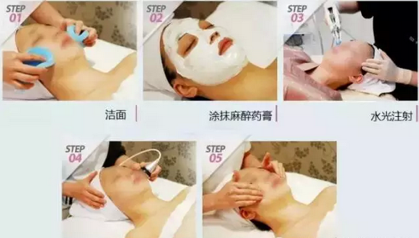 水光針注射時(shí)要借助專門的儀器“水光槍”,將需要的美容針劑注射到緊貼表皮下的真皮層。具體操作過程如下: